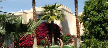 Desert Shadows Inn Resort & Villas Nudist resort offers the ultimate stress-free nude vacation in a beautiful clothes-free setting perfect for the discerning naturist. There simply is no place like this in the world! Acres of meticulously landscaped grounds behind secluded gates offer panoramic views and sunshine year 'round - only one mile from downtown Palm Springs, California! |